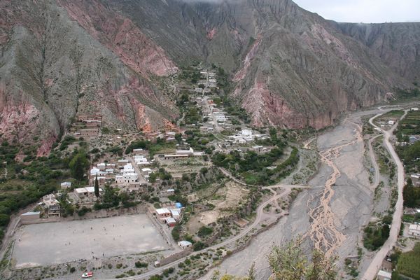 ... quer durch das Tal und auf den Ort samt Fussballplatz blicken. Das Dorf breitet in zwei Seitentaeler ....