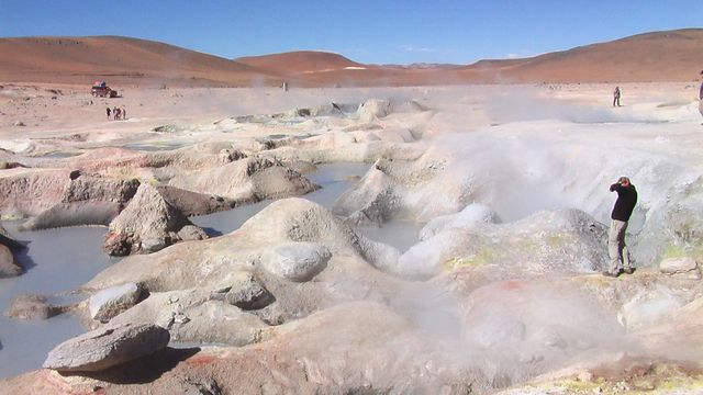 ... eine Gruppe Geysire auf 5000m, die vor sich hinblubbern und einen angenehmen Geruch nach faulen Eiern verbreiten.