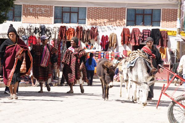 ... nach Tarabuco, wo reichlich indigenes Kunsthandwerk, ...