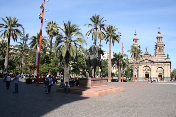 ... nach Santiago de Chile. Am Plaza de Armas kann man das typische nebeneinander ...