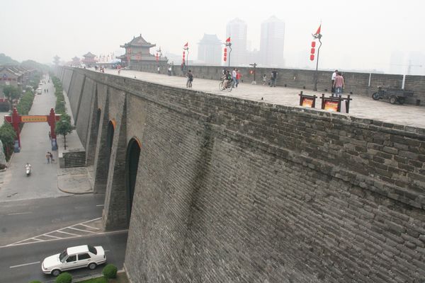Ein weiterer Hoehepunkt Xi`Ans ist die gigantische Stadtmauer, die sich in einem Rechteck mehrere Kilometer um den Stadtkern zieht.