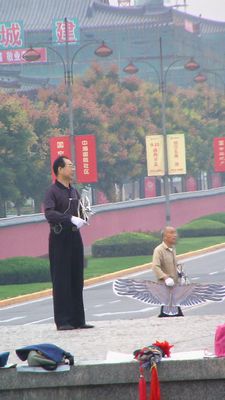 Wir sind beeindruckt von den morgendlichen Aktivitaeten der Chinesen, sei es Drachensteigen lassen...