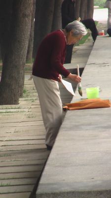 Kalligraphieuebungen mit Wasser,