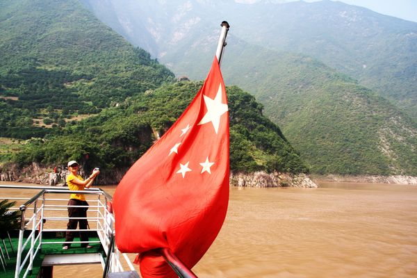 China hat hinter den drei Schluchten den gleichnamigen, beruehmt-beruechtigten Staudamm gebaut. Die Auswirkungen sieht man schon einige hundert Kilometer flussaufwaerts, ...