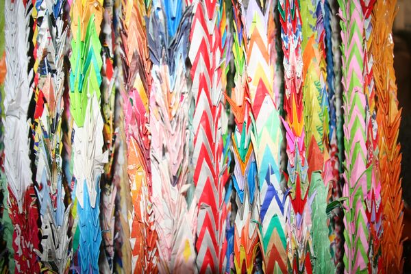 Teilweise bestand der Schmuck aus gefalteten Kranichen, die vermutlich nach Hiroshima geschickt werden. Dazu spaeter mehr.