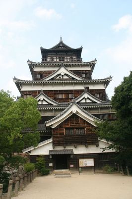 ... Burg von Hiroshima. Diese wurde wie der Park durch den verheerenden Atombombenabwurf am 6. August dem Erdboden gleich gemacht ...