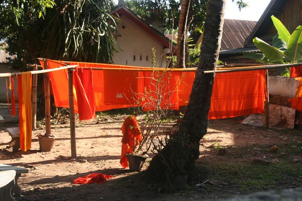 Die vielen buddhistischen Moenche, die in dieser Stadt leben ..