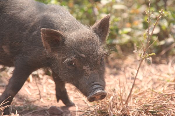 Wir fahren weiter vorbei an grunzenden Schweinen ...