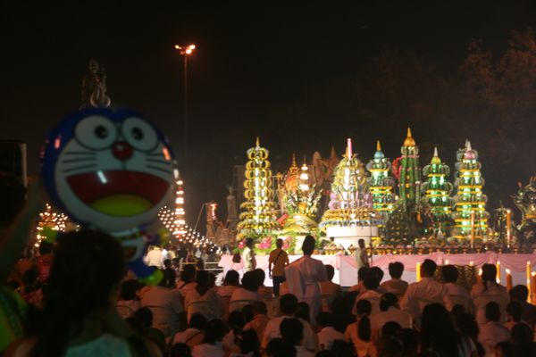 Uebrigens starb Rama V im Jahre 1910. Trotzdem waren es vor allem junge Leute, die zu der Gedenkveranstaltung stroemten. Wenn ein lange verstorbener Koenig schon so verehrt wird, so ist es keine Frage, ...