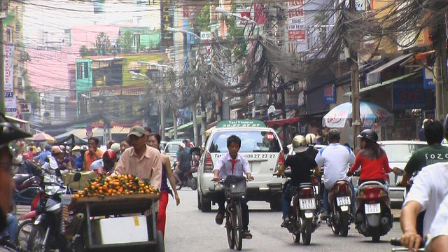 Wir erreichen die wuselige Ho-Chi-Minh-Stadt. Frueher hiess sie Saigon und auch heute kann man diesen Namen noch vielfach hoeren und lesen. In den dichten Verkehr mischen sich ...