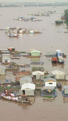Als weiteren Hoehepunkt besichtigen wir noch eine schwimmende Fischfarm, ...