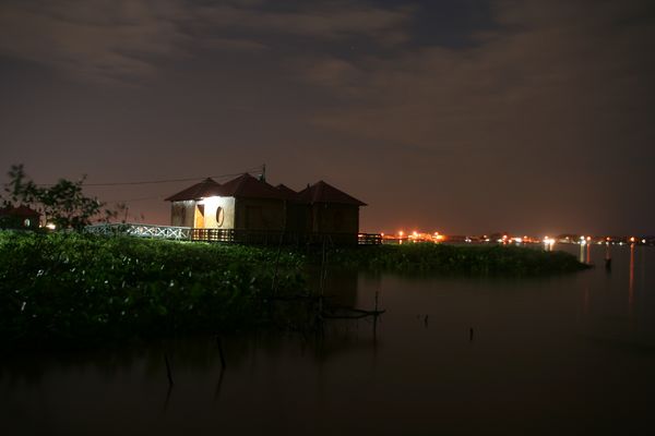 Dann geht ein grossartiger Tag zuende und wir uebernachten zur Abrundung in einem schwimmenden Haus auf dem Fluss.