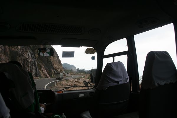 Nach drei Tagen verlassen wir Dalat und fahren mit dem Bus durch eine wunderschoene, dicht bewaldete Berglandschaft zur Kueste ...