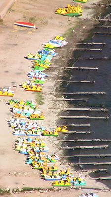 ... auf das Strandleben. Fuer uns ein letzter Blick in Bolivien, mit ein wenig Wehmut ziehen wir weiter nach Peru.