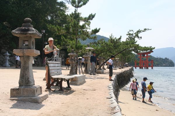 Das eigentliche Ziel des Touristenstroms ist aber das Torii des Itsukushimaschreins, das im Wasser steht, ...