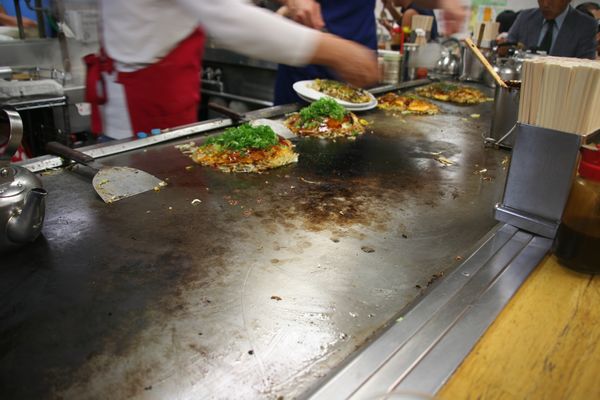 Abends gibt es noch eine Spezialitaet Hiroshimas ...