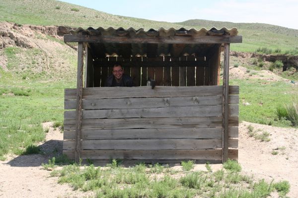 Unsere erste Tour nach Norden Rinchtung Khoevsgolsee. Schon kurz hinter der Hauptstadt werden Latrinen unserem Alltag angehoeren.